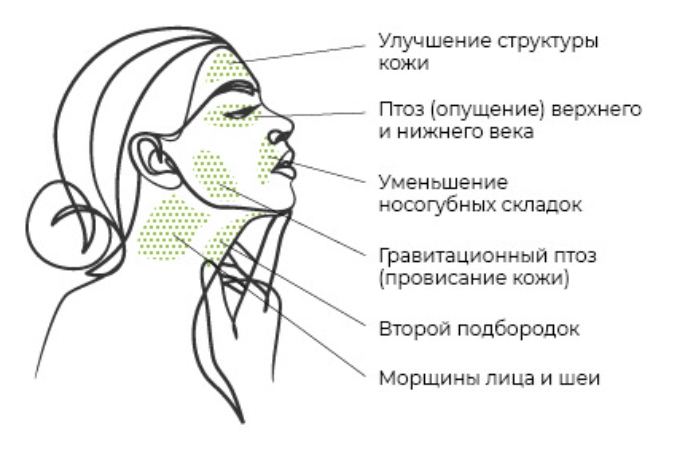 Стимулируется выработка собственного нового коллагена и эластина в коже